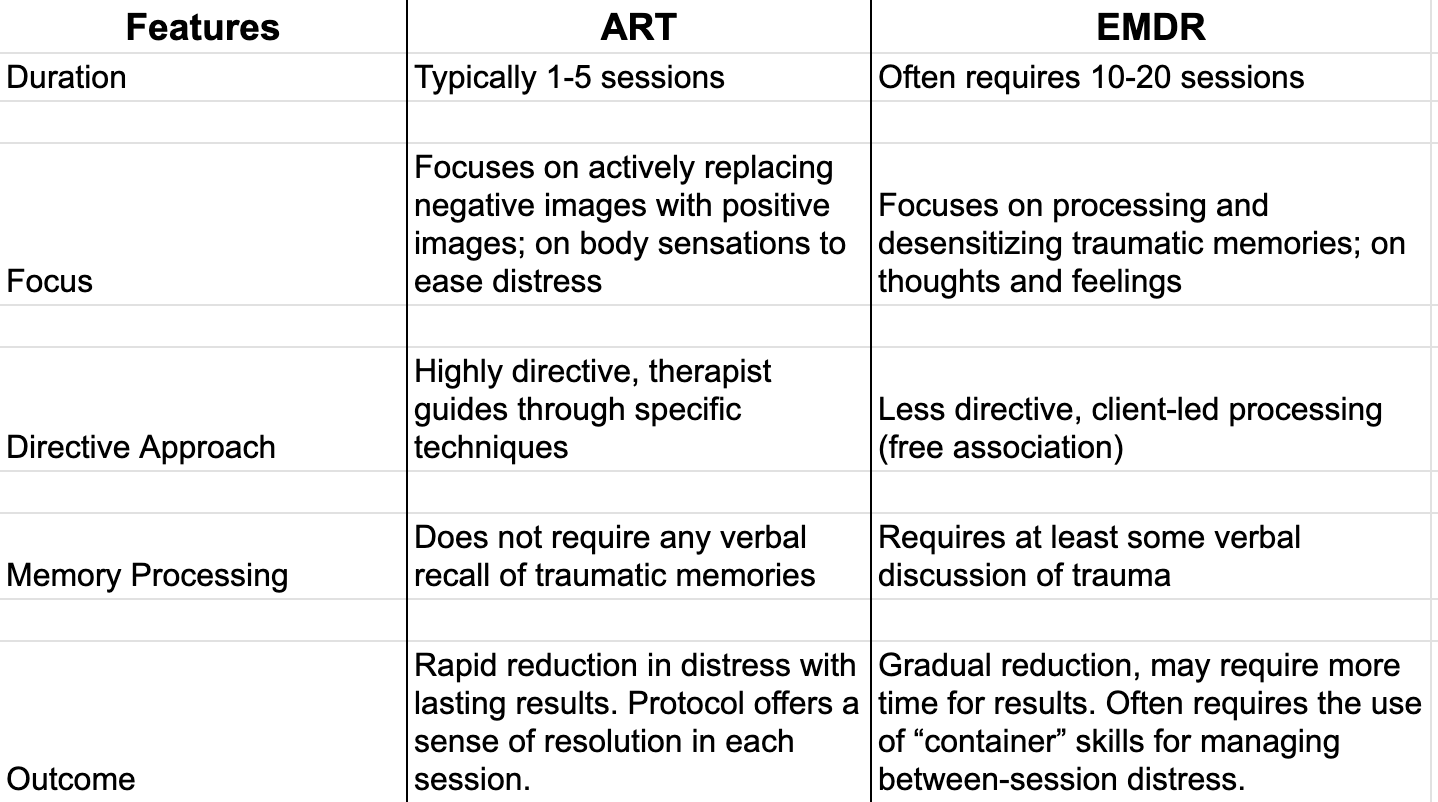 ART and EMDR differ in several key areas.